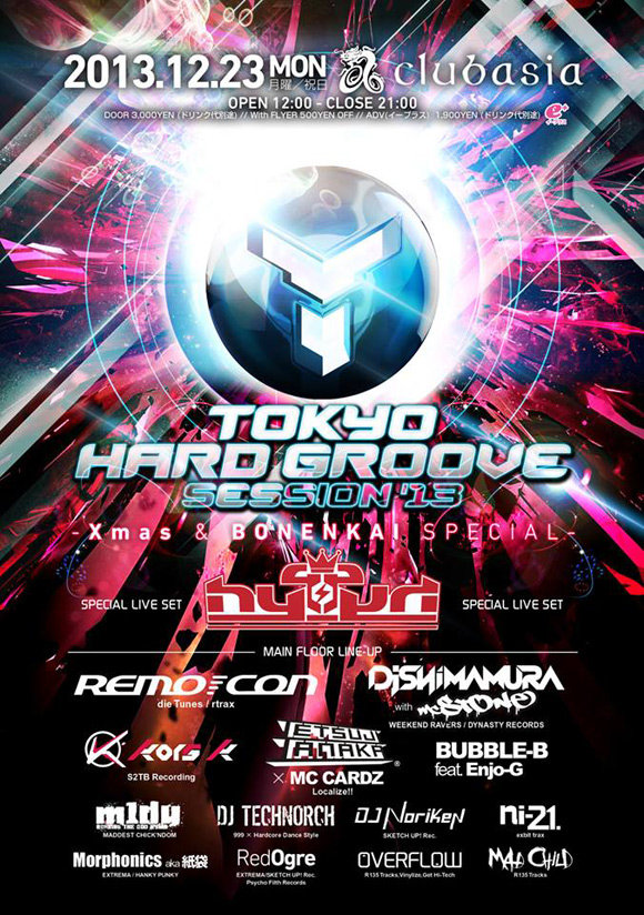 クリスマスイブイブの12月23日月曜日!! この日渋谷Club Asiaで開催されるハードテック、ハードスタイルな大型パーティ「TOKYO HARD GROOVE SESSION」に、BUBBLE-B feat. Enjo-Gにてライブ出演致します!