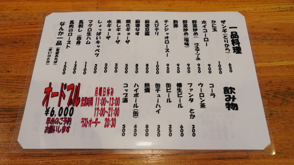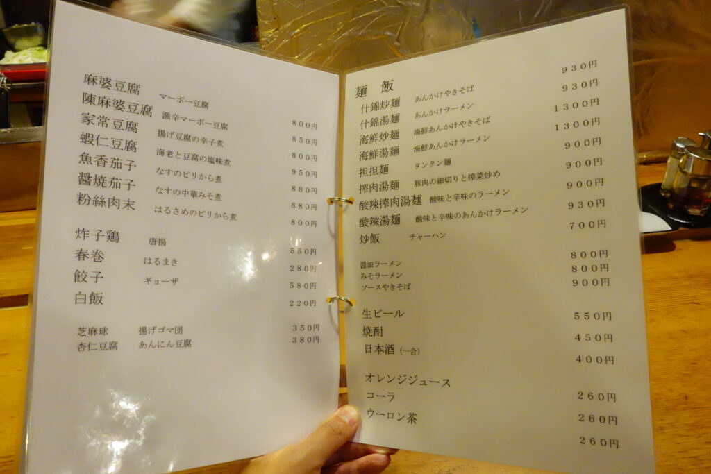 一品料理が並んでいるが、その中に「麻婆豆腐」があることを見逃さない。
